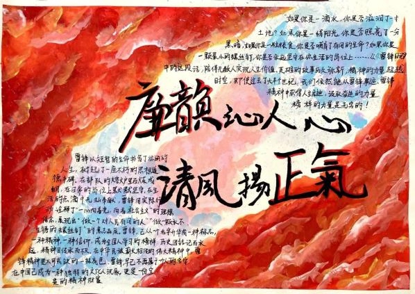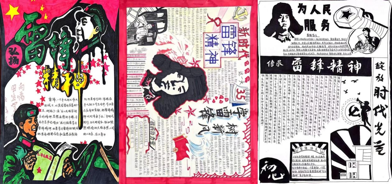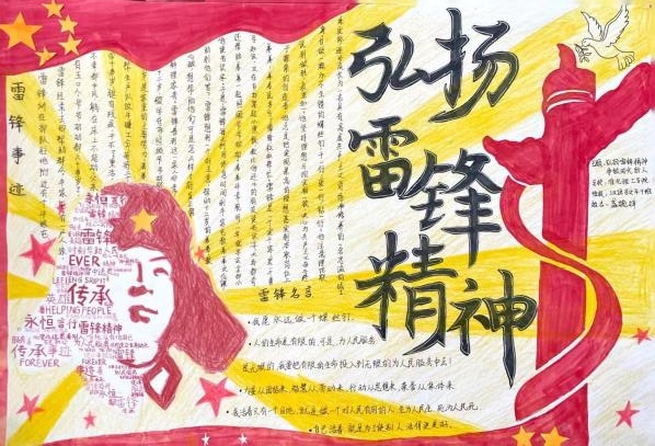 参赛同学以“雷锋精神”为核心,通过介绍雷锋生平感人事迹、绘画雷锋人物形象等方式进行创作。灵动鲜活的《学雷锋,践行动》;多姿多彩的《学雷锋,树新风》;质朴简约的《雷锋日报》。图文并茂,生动活泼,不仅展现出bat365学子良好的创作功底,更彰显了同学们对雷锋精神的深刻感悟。