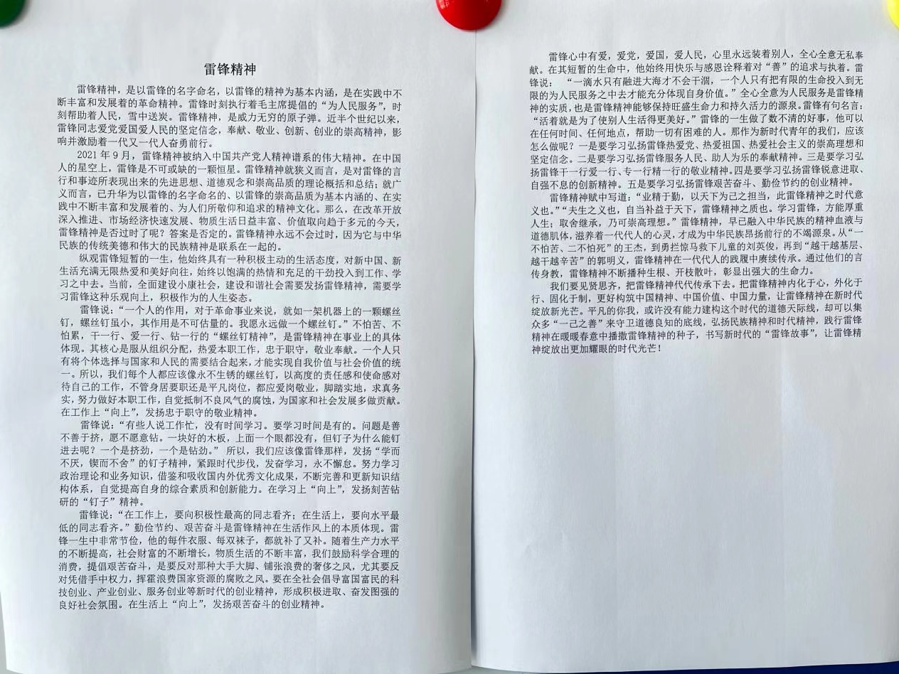 为弘扬雷锋精神,致敬时代先锋,扎实推进学生的思想道德教育,促进学生文明素养的提高。bat365中文官方网站在“学雷锋活动月”中组织开展了手抄报比赛及征文活动活动。同学们积极响应,踊跃参与,以自己创作的作品展现对雷锋精神的学习体会。