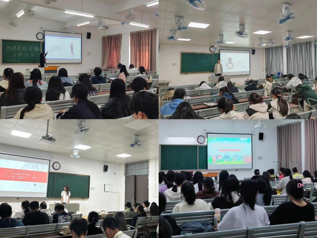 主题教育活动由各班级辅导员老师主持,老师们结合近期校园电信诈骗的特点,以PPT形式再次向同学们普及了什么是电信诈骗、电信诈骗的特点是什么、诈骗分子如何利用人们的心理弱点以及同学们应该如何防范应对。活动中同学们再次学习了《防范电信网络诈骗宣传手册》,进一步增强识骗防诈的能力,掌握应对电信网络诈骗方法。