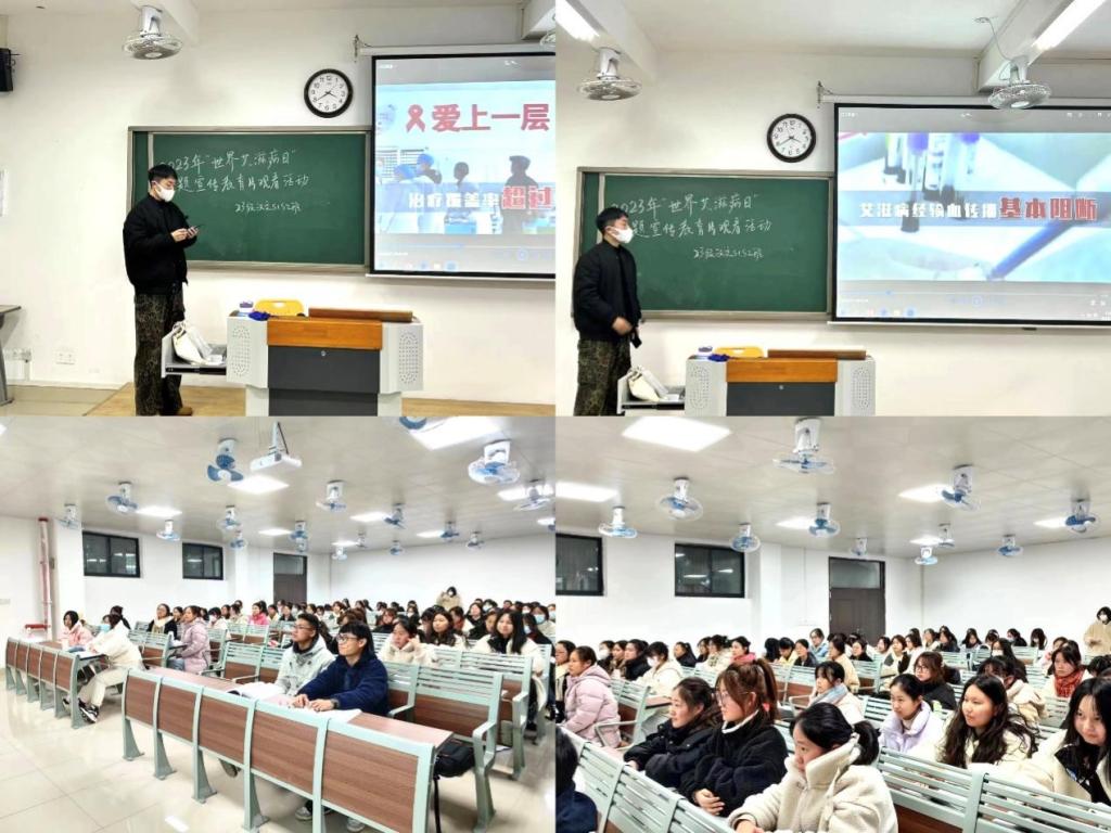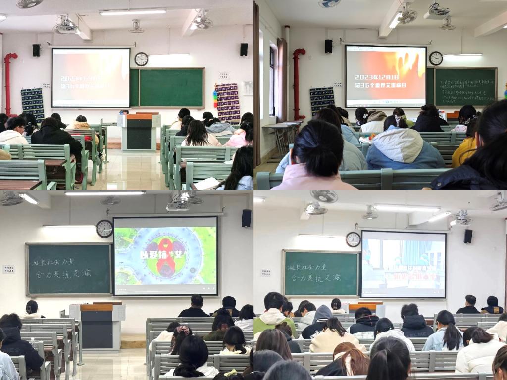 班会上,各班播放了以“凝聚社会力量,合力共抗艾滋”为主题的2023年“世界艾滋病日”宣传片,提醒对于艾滋病要早预防、早检测、早治疗。宣传片播放完之后,各班还结合艾滋病发后的案例,向学生介绍了艾滋病的病因、传播途径、危害及如何防治等方面的知识,使学生认识到养成良好健康生活习惯的重要性,努力避免血液感染。同时教育学生不惧怕、不歧视艾滋病病人和病毒感染者,学会正确对待他们,并通过预防艾滋病知识测试等形式广泛宣传防艾知识,使学生们进一步认识和了解“防艾”的必要性。