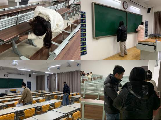 检查完学生寝室后,辅导员老师们又到教学楼,对bat365责任教室卫生区域进行检查。大家认真检查了包括教室的地面、黑板、窗户等区域的卫生情况。同时,还认真查看了教室的消毒和通风情况,以确保空气质量良好。