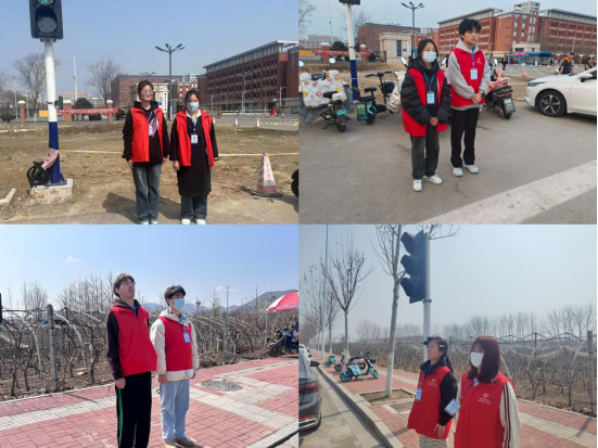 本学期,学校对面的快递站营业,很多同学需要去马路对面的快递站拿取快递,面对川流不息的车流,“安全过马路”成了同学们日常生活需要面对的问题,学生会成员发现后自觉组成志愿服务小组,利用每天中午和下午放学时间提前到达校门口,进行红绿灯路口安全守护志愿服务,志愿者们穿着红马甲、佩戴工作证提醒同学们安全通过斑马线,尤其在学生流动高峰期,及时地提醒和劝导保障了同学们的交通安全。靓丽的红马甲成为校外红绿灯路口的一道风景线,学生会工作者用文明礼貌的行动传递着雷锋精神,为营造文明安全有序的交通环境做出贡献。
