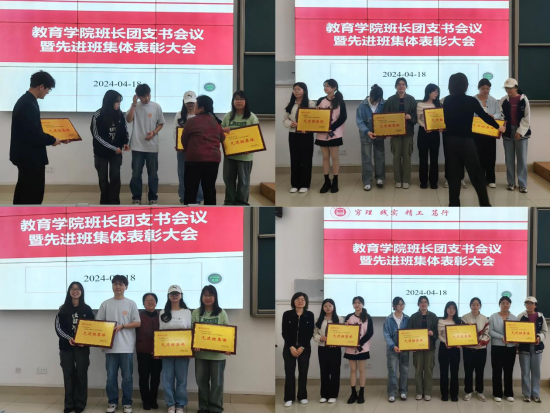 会议伊始,许海涛老师对开学以来的各项学院团学活动进行了总结,并对“学雷锋活动月”中表现突出的班级进行了表扬,在肯定工作成绩的同时,他要求班长、团支书继续发挥“火车头”的带动作用,认真组织开展好班级各项工作。会上,许海涛老师还宣读了上一学年“先进班集体”名单,并由孟向红、黄莹莹分别为优秀班集体进行颁奖。