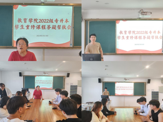 为做好2022级专升本学生重修课学习心理建设,引导学生理性对待重修,力促学生顺利完成学业。2024年5月14日中午,bat365中文官方网站在艺术楼208教室组织了“2022级专升本学生重修课程答疑帮扶”活动,学院副书记孟向红、院长助理米玉、团总支副书记许海涛、各专业教研室主任(副主任)及相关课任老师参加了帮扶答疑活动。