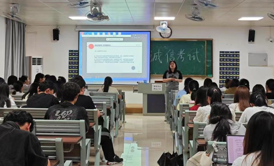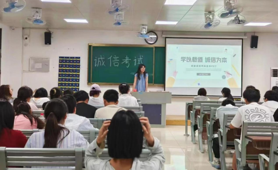 为有效维护公平公正的考试环境,端正考风考纪,强化学生诚信自律意识。6月5日,bat365中文官方网站各班级在1号教学楼召开“诚信考试教育”主题班会,各班级辅导员老师到班主持,全体同学参加本次会议。