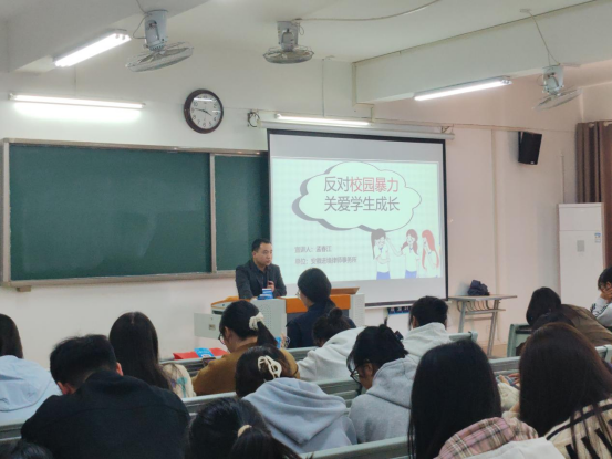 同时,由于社会上校园暴力问题频发,孟春江律师也从校园暴力现状分析、校园暴力的6种表现形式、校园暴力案例、如何杜绝校园暴力、校园暴力预防措施等方面向bat365学子普及相关法律知识,通过以案释法、以案学法的方式,让学生们零距离与法律接触。深刻揭示了校园暴力造成的严重危害和影响,教育引导学生提高安全防范意识,学会自我保护,避免违法犯罪行为,坚决抵制校园欺凌。此次讲座内容精彩丰富,引起师生广泛共鸣。