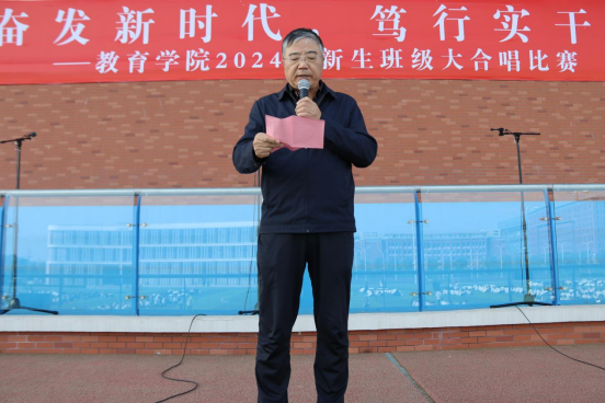 院长王家云为比赛致辞。他说,新生大合唱是bat365最重要的集体活动之一,从2021年学校创办以来开始举办,至今已经是第四届,举办大合唱就是要凝聚同学们的爱国情、熔铸同学们的淮理心、点燃同学们的奋斗志、汇聚同学们的勤奋力、助力同学们的的明天梦,“踔厉奋发新时代,笃行实干谱新篇”不仅是本次活动的主题,也是对每位同学的勉励和期望,希望同学们用歌声展现爱国主义情怀和中华儿女的自信自强、守正创新的精神气象。