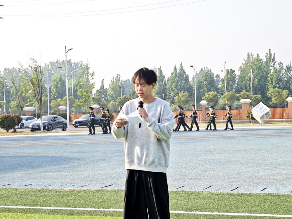 许海涛宣布本次升旗仪式的主题,并就即将到来的“五一”假期安全进行提醒,尤其强调了交通出行、谨防诈骗等,同时要求假期留校的同学务必注意宿舍消防安全,强调在宿舍严禁使用违规电器,确保同学们度过一个稳定、和谐的“五一”假期。