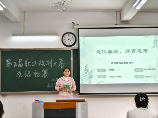 为了提高bat365学生生涯规划意识,精准提升就业核心竞争力,bat365中文官方网站于11月5日下午在2号教学楼412、413、414、415、416教室举办“第五届大学生职业规划选拔赛”。本次大赛的主题是“学海启航,职海扬帆”,大赛分设“成长赛道”与“就业赛道”两个赛道。75位选手参加了本次选拔赛,他们是从班级比赛中脱颖而出的优秀选手,学院辅导员和专任教师共同担任本次大赛的评委。