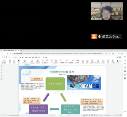 在核心分享环节,俞教授重点介绍了ICD生涯发展模型——“兴趣(Interest)—职业认知(Career)—梦想(Dream)”的三维成长框架。她表示,青年生涯发展的第一步是深入认识自己,在学习与实践中不断探索兴趣与能力边界;第二步是主动走向社会,了解专业发展、行业趋势与职业需求,在现实世界中建立清晰认知;第三步则是以榜样为镜,在更广阔的人生坐标中确立理想与目标,让兴趣、能力与梦想形成相互支撑的成长闭环。