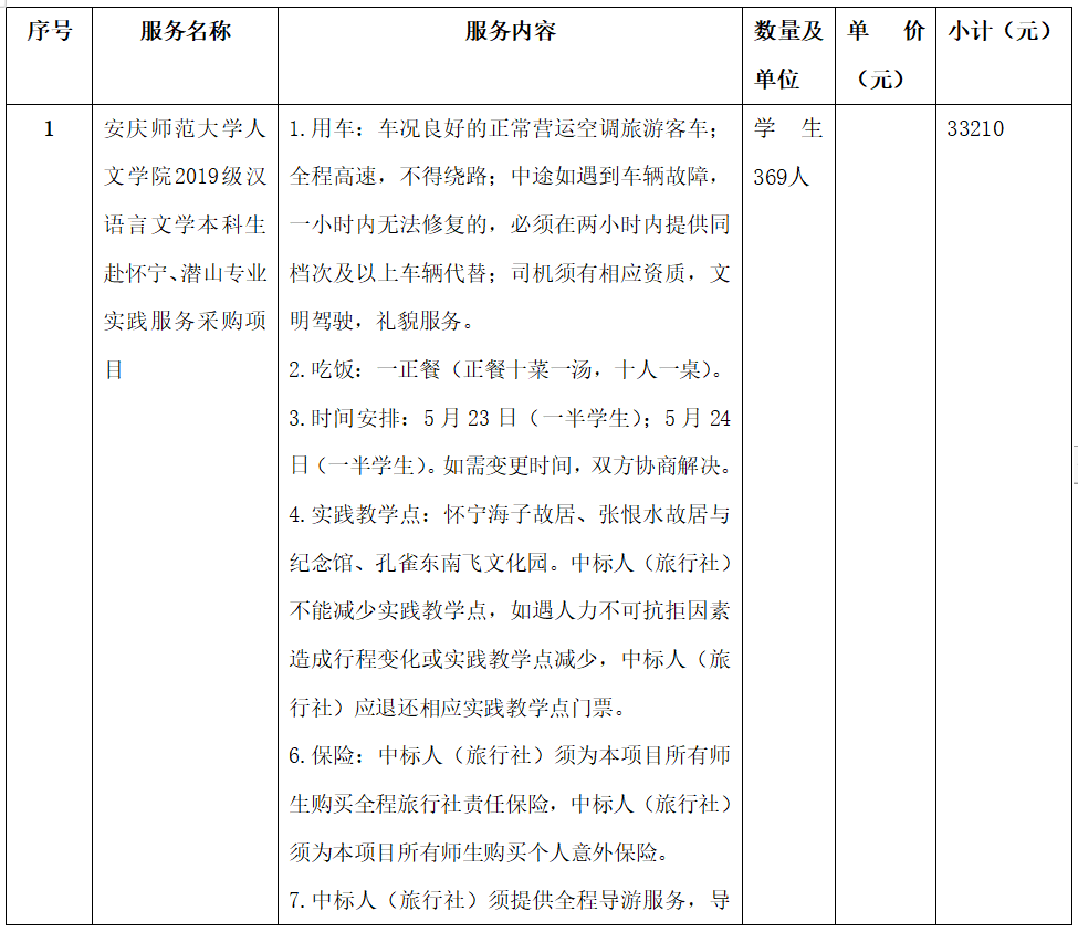 2.采购项目名称:kaiyun官方登录入口开云kaiyun网站2019级汉语言文学本科生赴怀宁、潜山专业实践服务采购项目