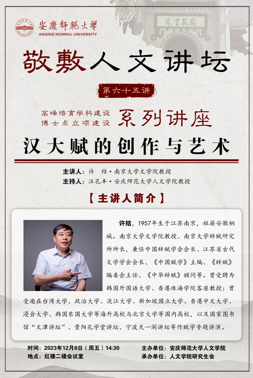 【敬敷人文讲坛(65)】汉大赋的创作与艺术