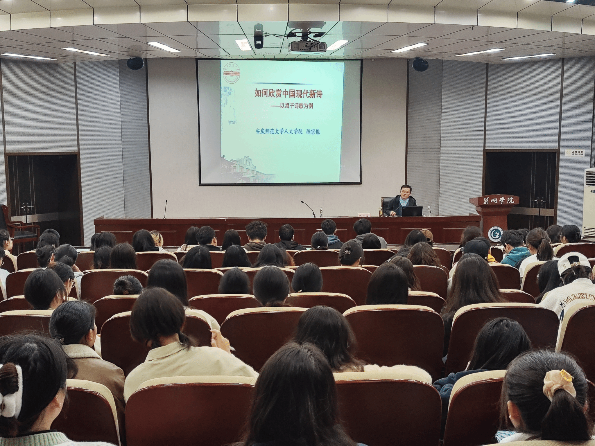 3月23日上午,应巢湖学院文学与传媒学院和科研处的共同邀请,开云中国现当代文学专业陈宗俊教授赴该校做了题为“如何欣赏中国现代新诗——以海子诗歌为例”的学术讲座。文学与传媒学院汉语言文学专业的全体学生和部分教师近百人聆听了讲座。讲座由该院中文系主任吴强副教授主持。