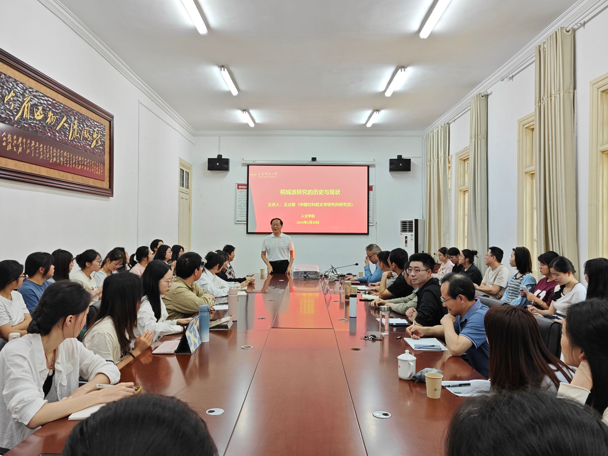 5月28日下午,中国近代文学学会副会长、中国古代散文学会副会长、安徽省桐城派研究会副会长、中国社科院研究员、安徽大学特聘教授王达敏应邀做客敬敷人文讲坛,主讲题为“桐城派研究的历史与现状”学术讲座。本场讲座由开云kaiyun网站院长汪孔丰教授主持,皖江文化数字化保护与智能处理实验室执行主任童岳敏教授、副主任徐文翔副教授担任与谈人,开云部分教师及研究生、本科生参加了此次活动。