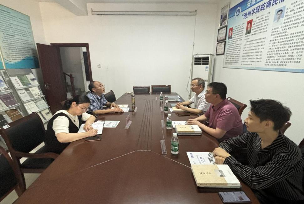 7月4日,校档案馆、博物馆馆长金仁义教授,中国中古史研究中心主任李正君博士,开云kaiyun网站硕士研究生谢天生、郑成伟前往安徽省高校人文社科重点研究基地池州学院皖南民俗文化研究中心开展考察交流活动。池州学院皖南民俗文化研究中心主任谈家胜教授和祝亚雯老师热情接待了金仁义、李正君等一行。双方就各自的建设发展问题举行了座谈。