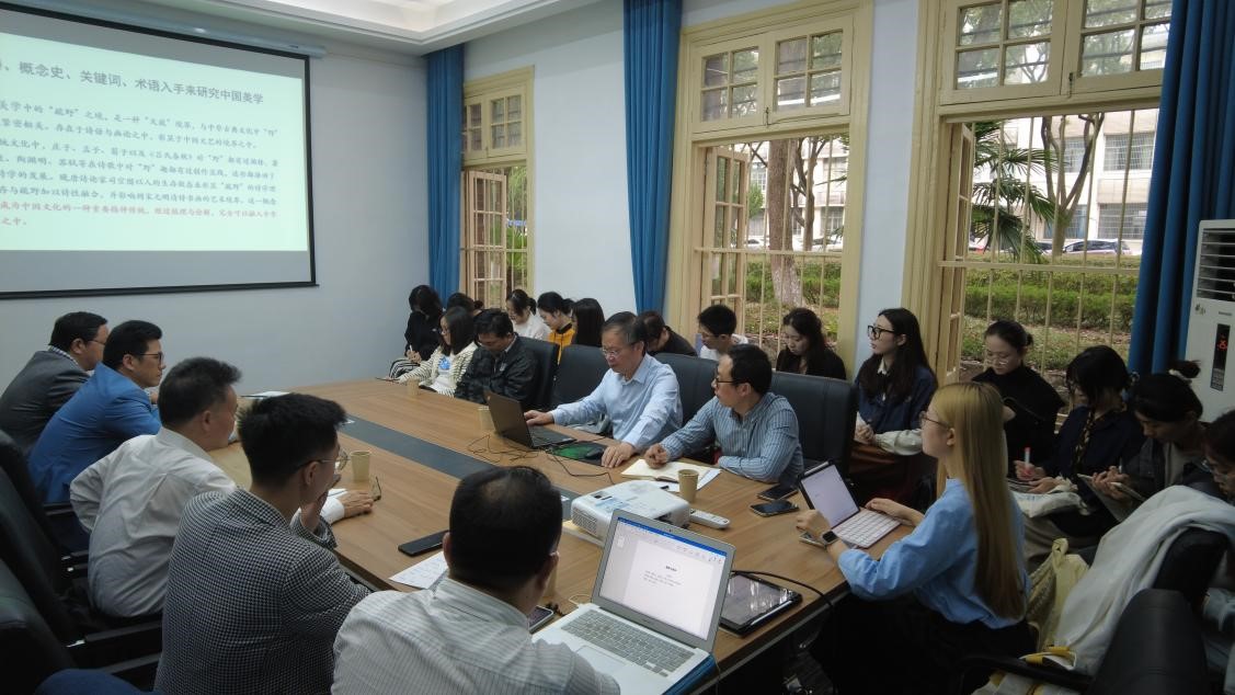 10月14日,由学院主办、美学与文艺评论研究中心承办的“美学名家讲坛”第三讲在菱湖校区红楼106会议室顺利开讲。当代著名美学家、中国人民大学国学院原副院长、中国人民大学杰出学者特聘教授袁济喜应邀作了题为“疏野与美学”的学术讲座。讲座由学院副院长、美学与文艺评论中心副主任金松林教授主持,中心主任江飞教授、中心部分骨干教师和研究生参与了此次活动。