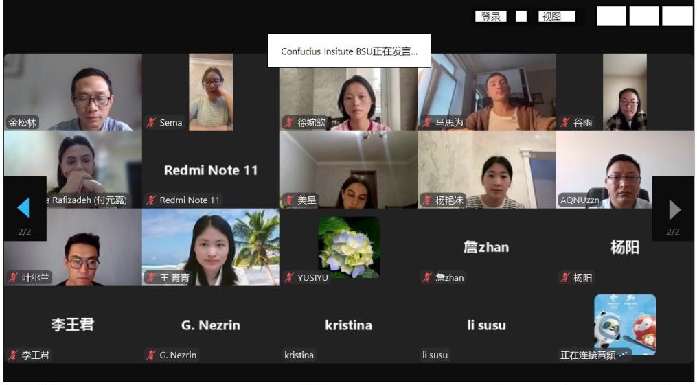 10 月12 日,应安徽大学阿塞拜疆巴库国立大学孔子学院邀请,开云教育部语合中心“国际中文教育与黄梅戏沿‘一带一路’国家的协同传播研究”项目团队为该校孔子学院举办了“走进中国戏曲——黄梅戏专题讲座”。该活动系巴库国立大学孔子学院“庆祝2024年国际中文日和孔子学院20周年系列活动”之一。该院中方院长王浩强,开云国际交流与合作处处长张支南、学院副院长金松林分别致辞,介绍学校和学院的有关情况。本次活动由该校孔子学院中方教师曾春晓主持,30余名师生参与了此次活动。
