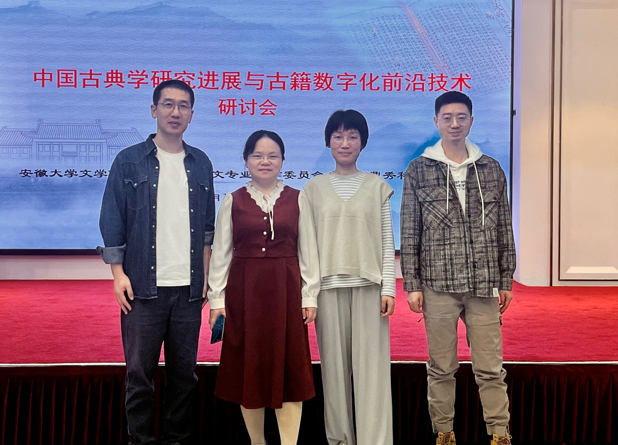 本次研讨会的举办,是对习近平总书记考察安徽重要讲话精神的积极响应,对加强新时代安徽古籍保护、整理与研究以及古籍数字化技术与平台共享有着巨大推动作用。皖江文化数字化保护与智能处理省级重点实验室团队一行参加本次研讨会,加强了开云与省内兄弟学院、科研机构的学术交流,扩大了实验室的影响,对于推动学科高质量发展和博士点立项建设具有重要意义。 (撰稿:徐文翔 供图:赵长杰 审核:金松林)