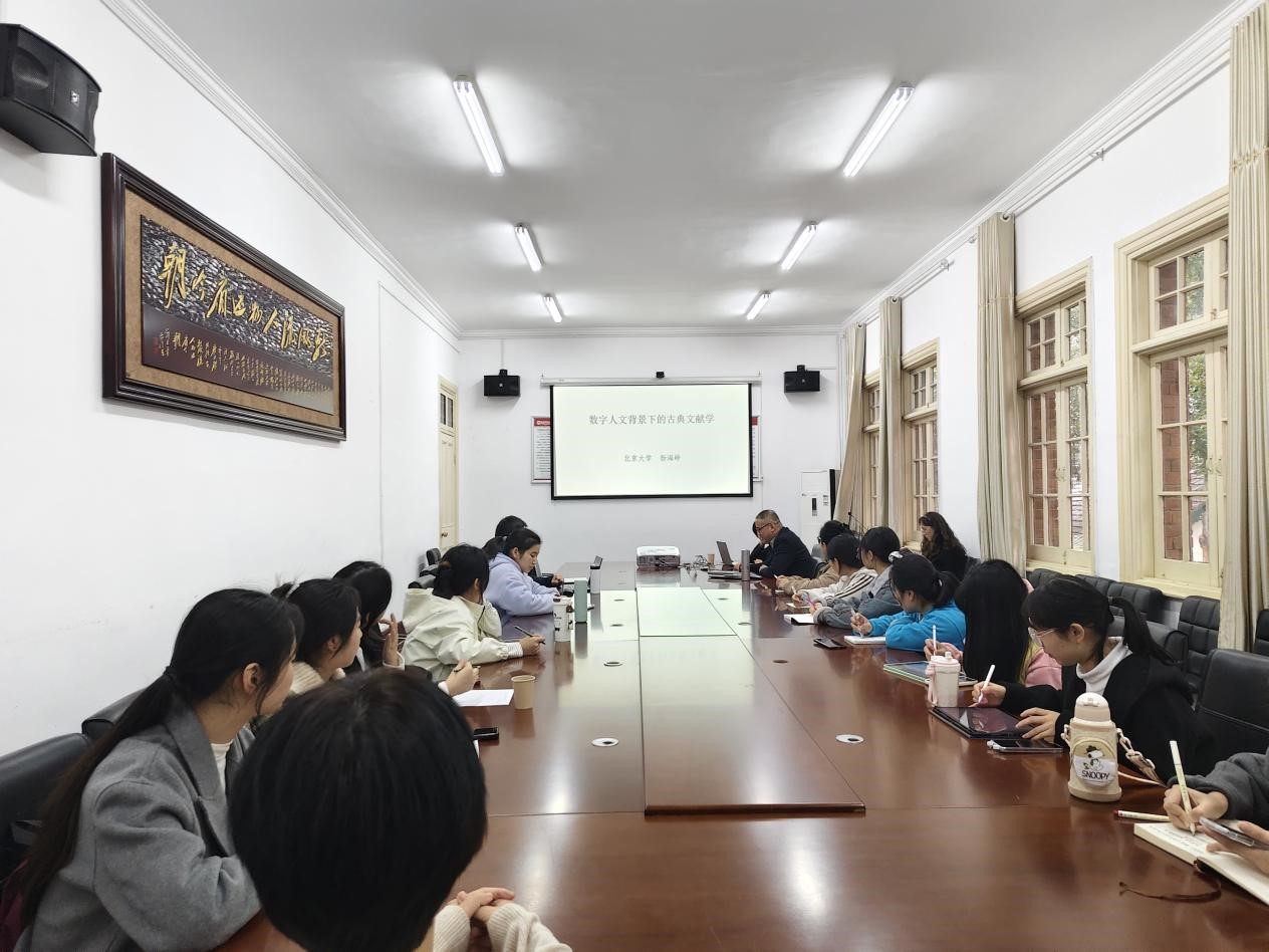 11月24日,北京大学中国古文献研究中心副主任杨海峥教授应邀做客敬敷人文讲坛,在菱湖校区红楼二楼会议室作了题为“数字人文背景下的古典文献学”的学术讲座。讲座由院长汪孔丰教授主持,芮文浩副教授担任与谈人,开云部分教师及研究生、本科生参加了此次活动。