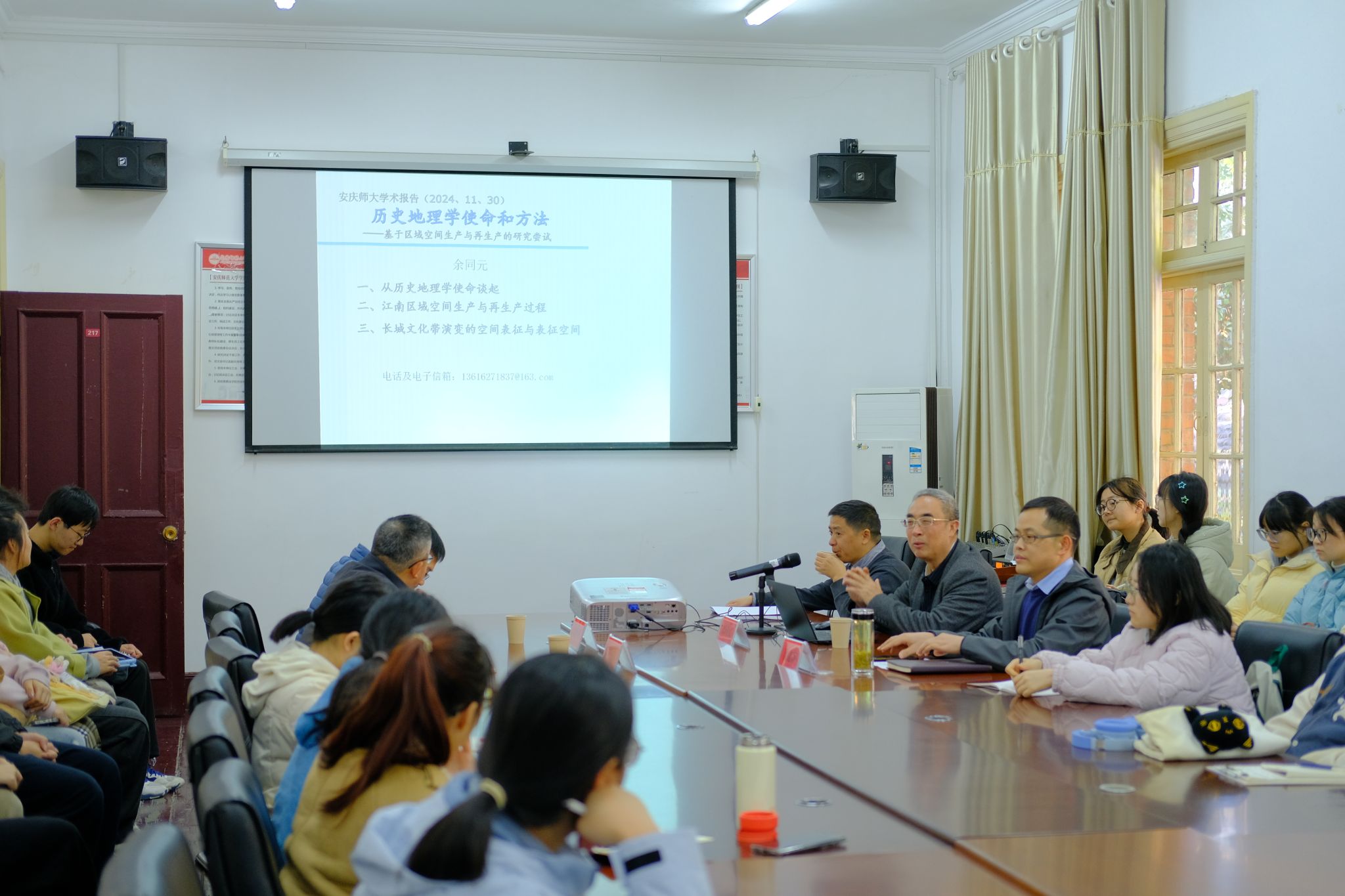 11月30日,苏州大学社会学院历史系博士生导师、国学研究所所长余同元教授应邀做客敬敷人文讲坛,在菱湖校区红楼二楼会议室为师生们带来了一场题为“历史地理学使命和方法——基于区域空间生产与再生产的研究尝试”的学术讲座。本次讲座由开云kaiyun网站副院长沈志富教授主持,解春龙、胡世明博士为与谈人,学院相关专业本科生、研究生参加此次讲座。