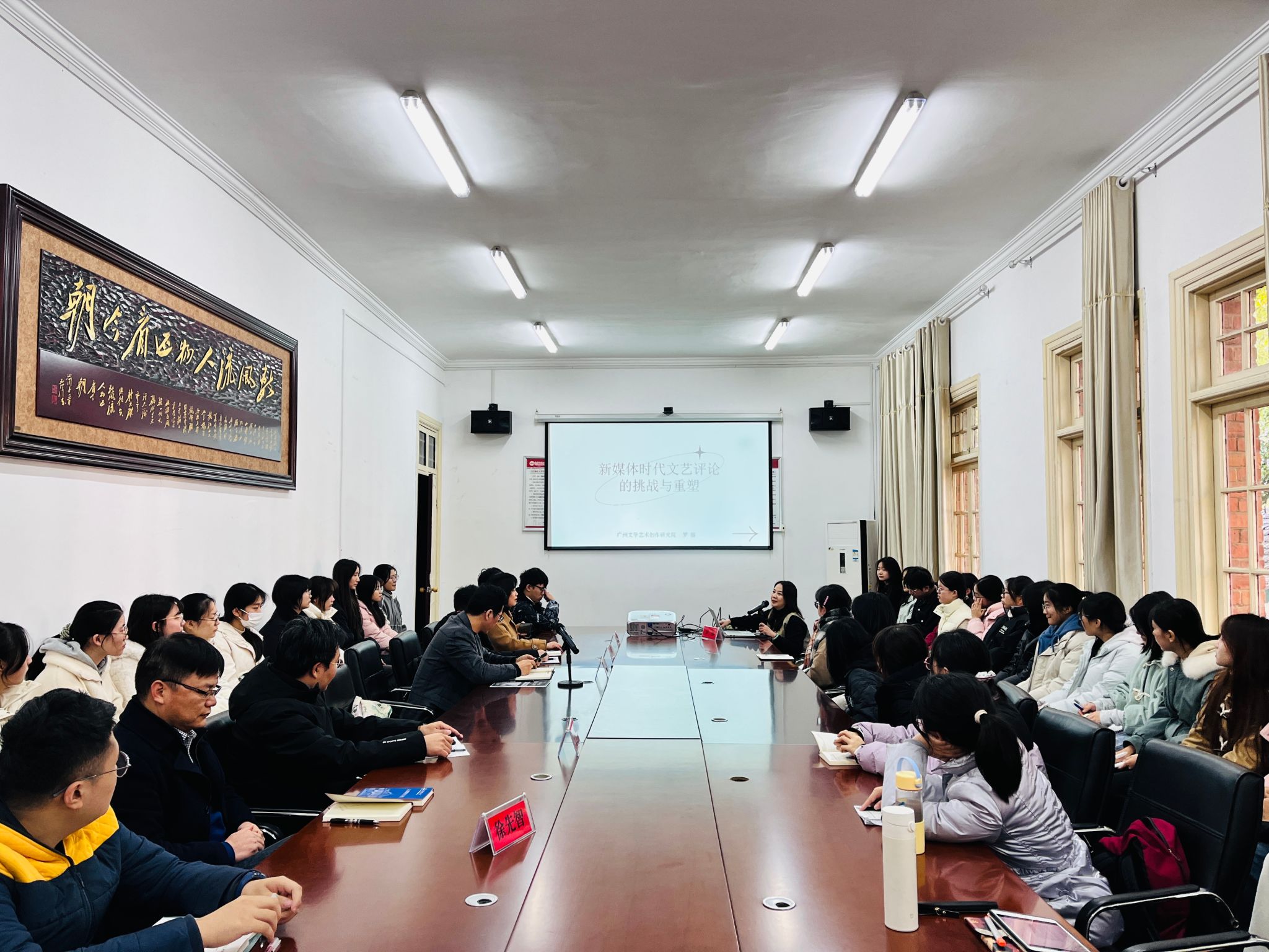 12月6日下午,文艺评论家菱湖大讲堂第一期成功举办。中国文艺评论家协会理事、广东省文艺评论家协会副主席、广州市文艺评论家协会主席、国家一级编剧罗丽应邀作了题为“新媒体时代文艺评论的挑战与重塑”的精彩讲座。本次讲座由安徽省文艺评论家协会副主席,kaiyun官方登录入口美学与文艺评论研究中心主任江飞教授主持,开云kaiyun网站副院长周红兵、中心副主任陈宗俊教授和专职研究员以及学院“文典班”、研究生近五十人参与。