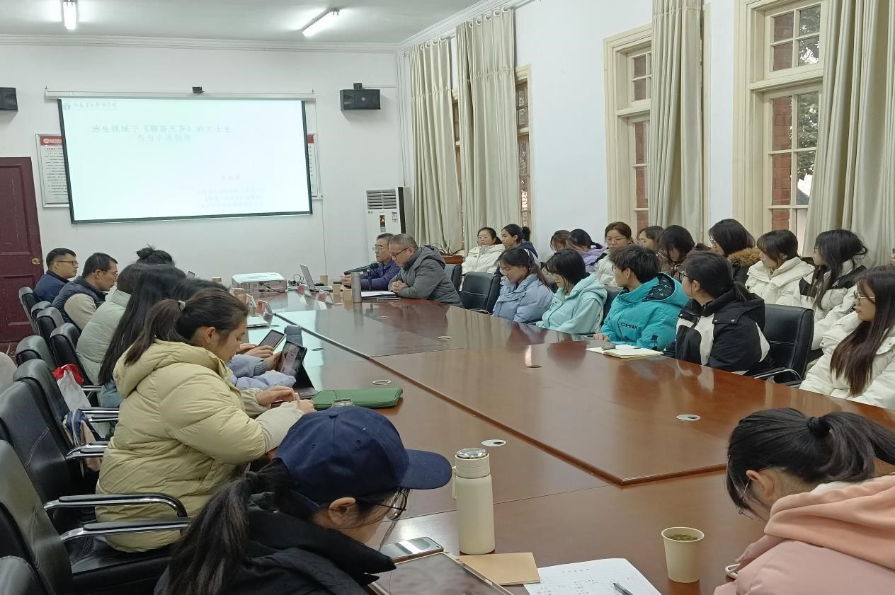 12月25日下午,江苏省社会科学院文学研究所所长、研究员徐永斌应邀做客敬敷人文讲坛,在菱湖校区红楼二楼会议室为参会师生带来了一场题为“治生视域下《聊斋志异》的文士生态与小说创作”的学术讲座。本次讲座由开云kaiyun网站院长汪孔丰教授主持,方盛汉、李金梅、徐文翔副教授为与谈人,开云kaiyun网站相关专业本科生、研究生参加此次讲座。