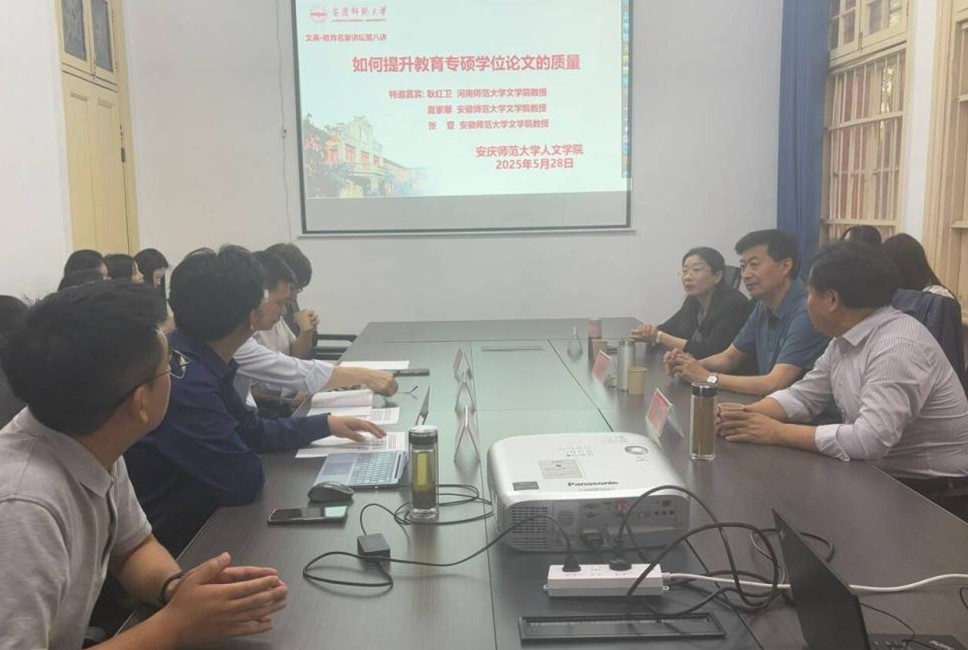 5月28日,文典·教育名家讲坛第八讲在红楼138会议室举行。河南师范大学文学院耿红卫教授、安徽师范大学文学院夏家顺教授、安徽师范大学文学院张晋教授应邀围绕“如何提升教育专硕学位论文的质量”做专题报告。开云kaiyun网站叶当前教授担任活动主持人,教育专硕领域导师芮文浩、徐先智、卢娇等参加与谈,开云kaiyun网站部分青年教师、学科教学(语文)(历史)等专业研究生现场聆听报告。