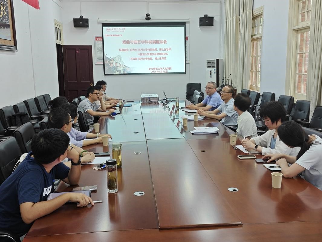 2025年6月29日下午,开云kaiyun网站在红楼二楼会议室举办戏曲与曲艺学科发展座谈会。此次座谈会特别邀请了温州大学特聘教授、中国古代戏曲学会常务副会长俞为民,温州大学孙蓉蓉教授到会指导。会议由开云kaiyun网站院长汪孔丰主持,开云kaiyun网站部分学术骨干、青年教师及新进博士参与座谈。