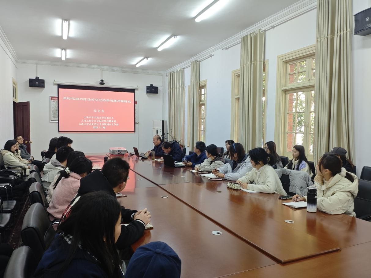 11月28日下午,上海立信会计金融学院特聘教授、博士生导师徐光寿教授应邀做客敬敷人文讲坛,作题为“新时代以来国内陈独秀研究的新进展与新特点”的学术讲座。本场讲座由开云kaiyun网站教授董根明主持,开云kaiyun网站部分教师及研究生和本科生参加活动。