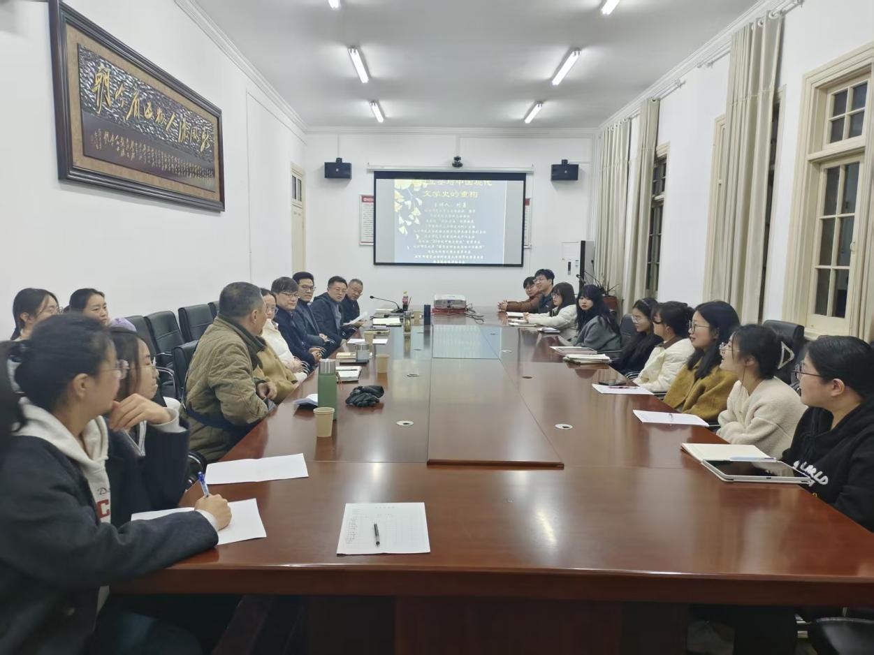 11月30日晚,中国现代文学研究会会长、教育部“长江学者”特聘教授、北京师范大学文学院博士研究生导师刘勇教授应邀做客kaiyun官方登录入口“敬敷人文讲坛”,在红楼217会议室为开云kaiyun网站师生带来了一场题为“文明互鉴与中国现代文学史的重构”的学术报告。本场讲座由陈宗俊教授主持,江飞教授、徐先智副教授、蔡洞峰副教授、胡莎博士、张敏博士等老师以及中国现当代文学部分研究生和本科生近30人参加了此次活动。