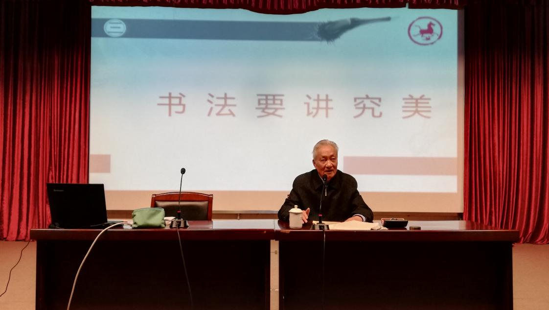 报告会上,丁伯华先生紧紧围绕“书法与人生”这一主题,紧密联系自己求学、从政、治校、治学的人生经历和感悟,从四个方面做了一场精彩纷呈、深入浅出、富有哲理的报告。报告第一部分是“书法与我的生活息息相关”,讲述他从蒙学到高中、大学再到走上工作岗位,几十年与书法的不解之缘。第二部分是“书法的作用”,他认为学习书法不仅是弘扬继承优秀的中华传统文化,还是磨练人的意志,陶冶人的情操,从而实现以美育人的重要路径。第三部分是“书法要讲究美”,围绕书法美的评判标准进行了深入浅出的阐述,并通过大量的例证予以说明。第四部分是“书法要讲究专和精”,他认为,大学生学习书法要做到入门要正,先从楷书入手,同时借鉴学习优秀的传统碑帖,持之以恒,长期坚持,久久为功,追求卓越。