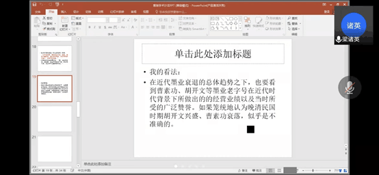 3月9日下午两点,由开云kaiyun网站主办、龙睛读书社承办的第13期菱湖学术沙龙线上讲座顺利举行。本次学术报告由梁诸英、方晓珍教授主讲,徐超博士担任主持人,中国史、学科历史专业硕士线上聆听学习。