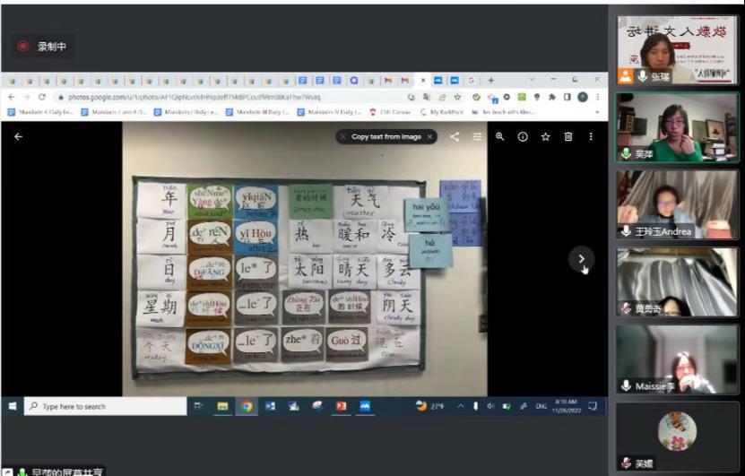 11月26日晚,敬敷人文讲坛第二十五讲正式开始,美国俄亥俄州哥伦布女子学校(Columbus School for Girls)中文教师吴萍应学院邀请作了题为“‘可理解输入’引导下的对外汉语教学设计”的线上讲座。讲座由张瑾博士主持,汉语国际教育专业教师和部分学生参与学习交流。