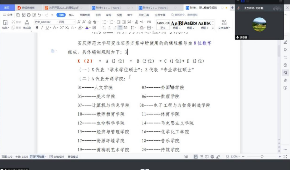 12月2日晚,开云kaiyun网站通过线上方式召开2023版研究生培养方案修订工作推进会。中国语言文学、中国史、学科教学(语文)、学科教学(历史)、汉语国际教育等五个学位点研究生培养方案制(修)订工作小组成员参加会议,副院长沈志富主持会议。