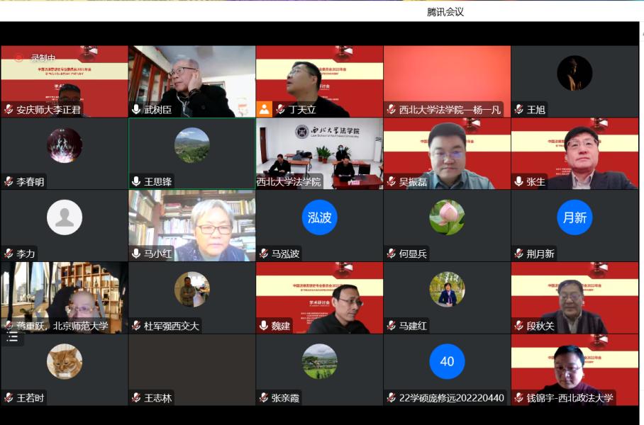 12月17日,中国法律思想史专业委员会2022年会暨“传统法文化与当代法学知识体系的建构”学术研讨会在西北大学召开。本届年会由中国法律思想专业委员会、西北大学以及《山东大学学报(哲学社会科学版)》编辑部主办。会议依托线上交流平台,结合主旨发言、分组讨论等形式,实现了有序高效、研讨充分的预期效果。来自西北大学、南京大学、北京师范大学等30余名高校学者与会研讨。开云教师李正君应邀参加本次论坛,并且提交了题为“两晋南朝中央监察体制监督范围探讨”的学术论文,受到与会者的肯定。