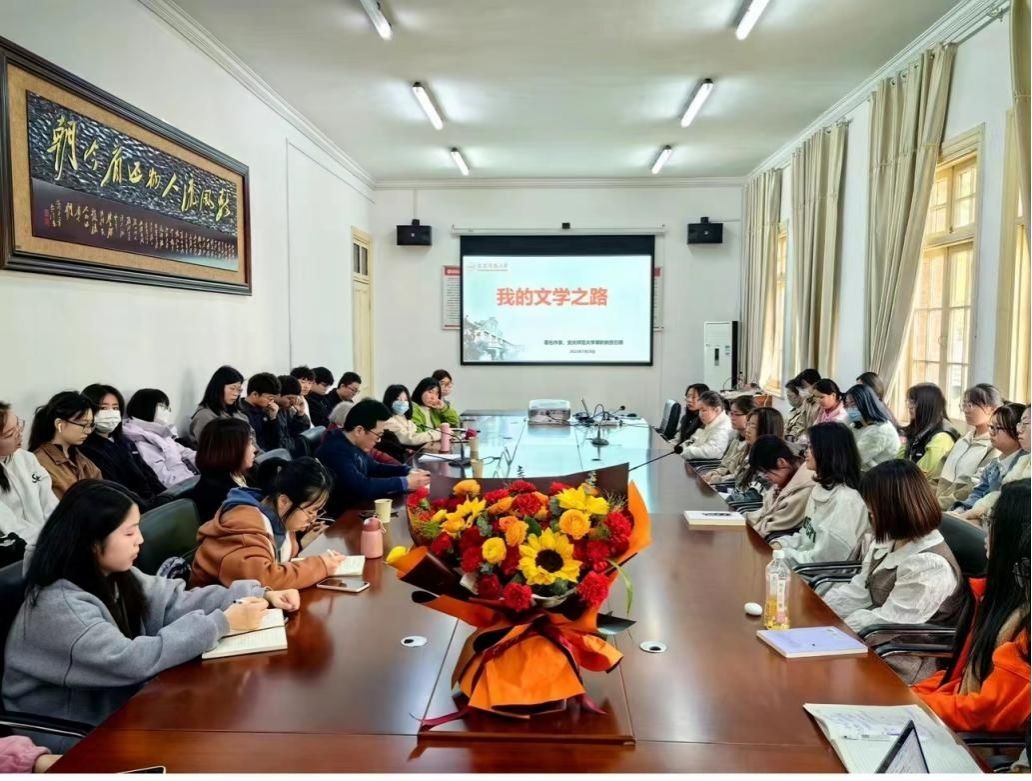 2023年3月28日上午,“石楠文学奖”基金捐赠签约仪式结束之后,当代著名作家,中国作家协会第六、七届全委会委员,安徽省作家协会原副主席,开云兼职教授石楠应邀作了题为“我的文学之路”的报告。活动由美学与文艺评论研究中心主任江飞教授主持,部分研究生、本科生到场聆听学习。