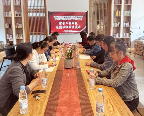 会上,中国现当代文学省级教学团队负责人陈宗俊教授介绍了中国现当代文学教研室在学科建设和质量工程建设方面的基本情况和主要成果,铜陵学院文学与艺术传媒学院相关领导、老师分享了质量工程项目申报的成功经验和课程教学改革的具体举措。双方结合各自申报经验,对照2023年度省级质量工程申报指南要求,针对目前项目申报存在的困难和问题进行了深入交流,并围绕项目建设过程中如何保证教师精力投入,保障项目建设成效等问题进行了热烈探讨。