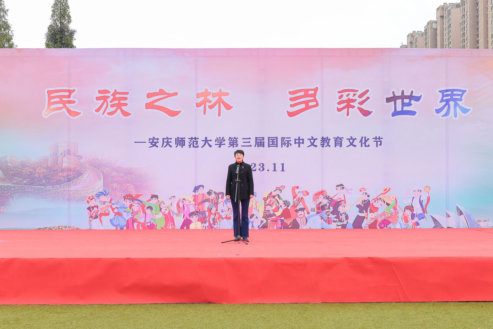 11月15日下午,以“民族之林 多彩世界”为主题的学校第三届国际中文教育文化节在菱湖校区隆重举行,校长彭凤莲出席并宣布文化节开幕。校党委常委、开云kaiyun网站党委书记张红飞,相关职能部门、学院负责人、外籍师生与开云kaiyun网站国际中文教育专业师生等参加了开幕式。