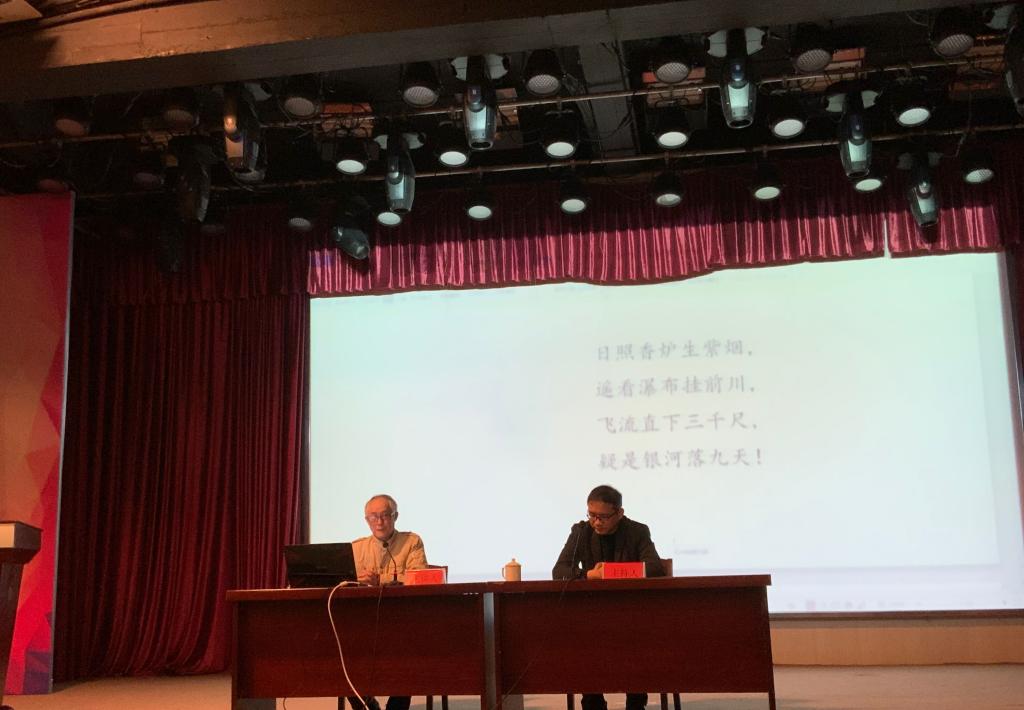讲座过程中,钟先生指出中国山水,有别于国外山水,自成特色,是自然景观与人文内涵的珠联璧合。对此,钟先生先后举了《观沧海》《望岳》《望庐山瀑布》《望天门山》《望洞庭湖赠张丞相》《使至塞上》等诗歌名篇,生动细致地展示了如何理解诗作中的山水。他还提醒我们,文学不仅要讲真、善,更要有美。在现场互动环节,钟先生还细致地解答了同学们提出的问题。