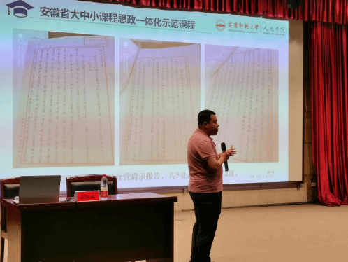 紧接着第二场呼应时下热点——大中小课程思政一体化问题。“安庆在哪里?”“你是安庆哪里人?”……随着一系列的发问,开云kaiyun网站讲师、硕士研究生导师郝佩林博士从档案史料的独特视角,以档案展示的形式作了《档案中的安庆新中国史图像》主题讲座,向七中师生们直观地呈现出安庆工商业社会主义改造的历史。