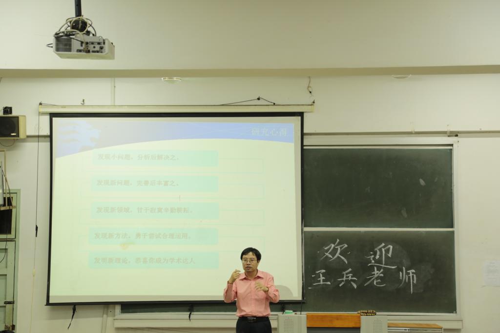 开讲伊始,王兵老师现身说法,以个人坎坷求学经历为例,强调后天努力和精神毅力的重要性。随后,他以时间为轴,以各时期的代表人物为证,引经据典,妙语连珠,将清代以来新加坡汉诗的演变进程娓娓道来,黄遵宪、康有为、丘逢甲等多位早期代表诗人的形象也随之在众人眼前逐渐丰满起来。王兵老师着重比较了“建国双雄”邱菽园与潘受的作品,他认为,两人丰富的新加坡生活经验以及自身深厚的文化造诣,无疑为新加坡汉诗的形成与发展起到了不可或缺的重要作用,同时辅以诗歌史料,指出二者在文化认同方面,都表现出回归“古典”的气韵以及对“文化中国”的渴求与向往,有力地佐证了中华文化对新加坡汉诗的深远影响力,引来阵阵掌声。最后,王兵教授还与在座的本科生及研究生们分享了自己的心得:研究应分三步“走”,发现问题,分析问题,完善并丰富问题,学习与生活亦当如是。在此基础上,他鼓励同学们在大学学习中要勇于提出新疑惑、发现新问题、探索新领域,甘于寂寞,不断辛勤耕耘,脚踏实地走好每一步。