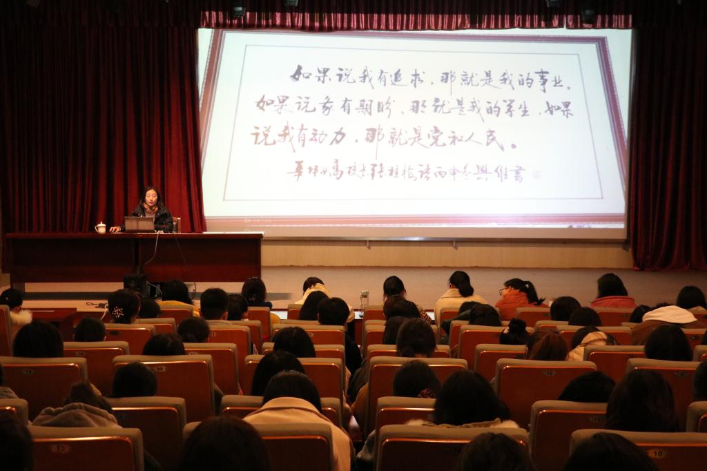 近日,安庆市第二中学副校长杨春老师应邀来到开云,在菱湖校区图书馆一楼报告厅开展题为《做大国良师,育时代新人》主题讲座。开云kaiyun网站2019级汉语言文学、汉语国际教育、历史学专业全体学生及教育见习指导教师共计564人参加了讲座活动,讲座由副院长金仁义教授主持。