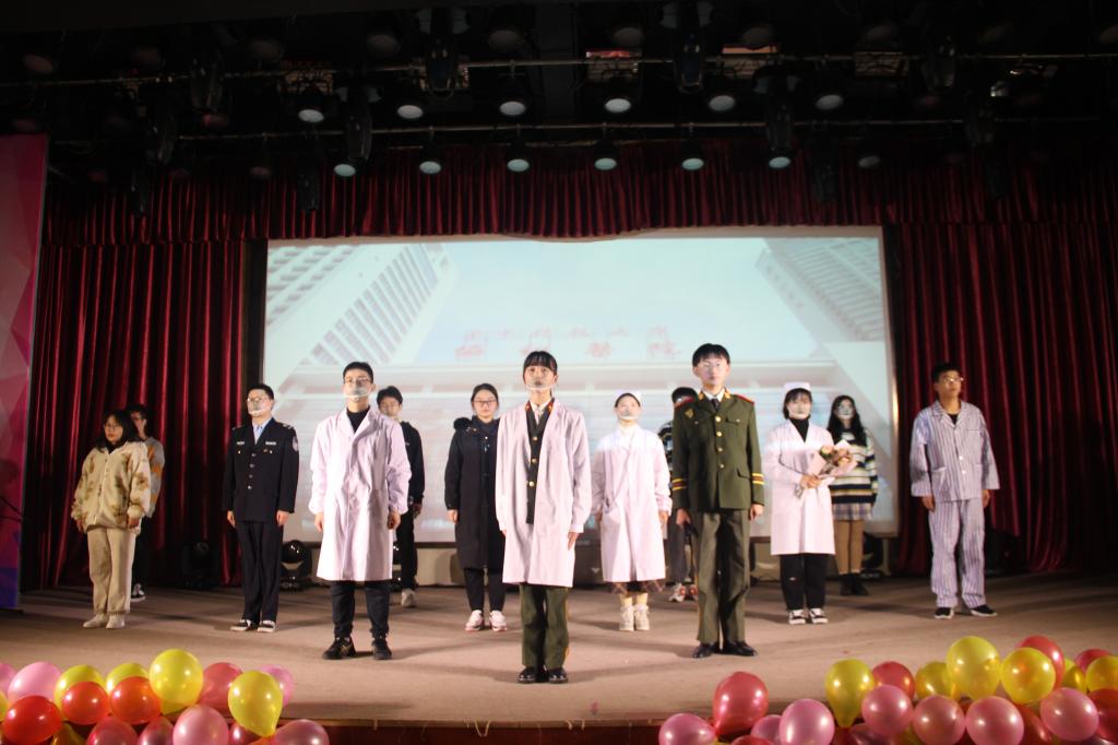 2019级汉语言文学一班艾宇龙说:“2020年是抗疫之年,在疫情期间,涌现出无数平民英雄,谱写了无数动人的篇章。为致敬这些伟大的英雄们,开云话剧社自编自导,原创话剧《黎明之前》。”话剧由警察在疫情期间阻止居民外出、军人母亲自愿奔赴抗疫前线、基层医生的防疫工作逐步得到群众理解等不同片段组成。演员们饱含深情,充分投入到表演之中,将观众带入不同的故事,再现了抗疫过程中医疗战士迎难而上和坚守岗位的感人画面,赢得现场一片掌声。