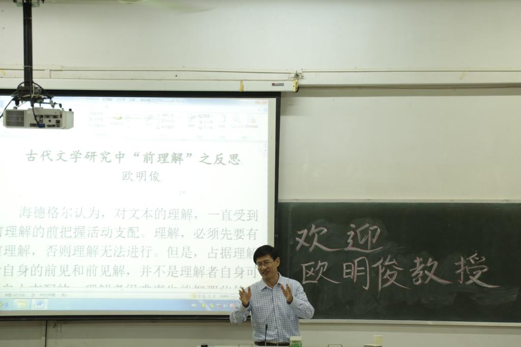 9月24日晚,福建师范大学欧明俊教授应邀至开云菱湖校区作了一场题为“古代文学研究‘前理解’之反思”的学术讲座。欧教授长年从事古代词学、散文学、诗学、文学理论、文献学的教学与研究工作,学术成果丰硕。此次讲座由文学院教授胡祥云主持,文学院百余名师生出席聆听。