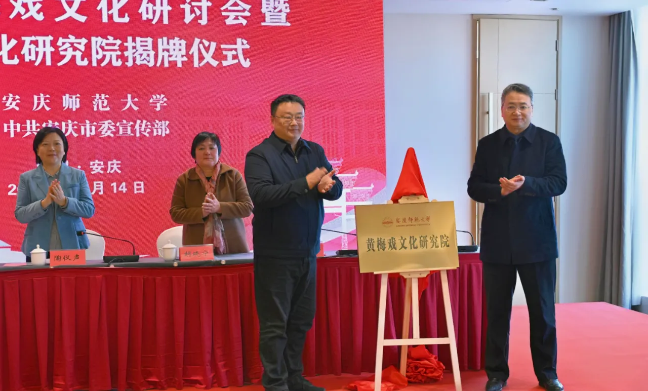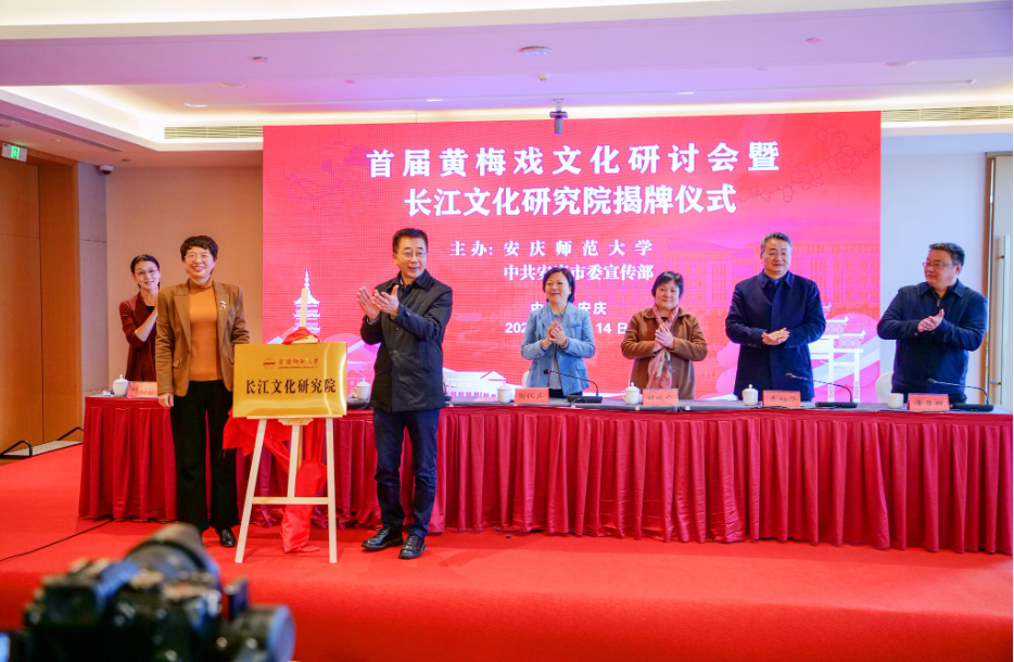 12月14日,“首届黄梅戏文化研讨会暨长江文化研究院揭牌仪式”在安庆成功举行。本次会议由kaiyun官方登录入口和中共安庆市委宣传部联合主办,kaiyun官方登录入口长江文化研究院、开云kaiyun网站、科研处等单位联合承办,会上同步揭牌kaiyun官方登录入口长江文化研究院和黄梅戏文化研究院。安徽省政协副主席陶仪声,安徽省委宣传部二级巡视员胡晓宁,安徽省社科联党组成员、副主席江涛,kaiyun官方登录入口党委书记李福华,安庆市人民政府副市长唐厚明,中国戏剧家协会副主席、安徽省再芬黄梅艺术剧院院长、kaiyun官方登录入口黄梅剧艺术学院院长韩再芬出席开幕式。来自南京大学、上海戏剧学院、中国艺术研究院、首都师范大学、安徽大学、安徽艺术学院、安徽师范大学、安徽省黄梅戏艺术职业技术学院、桐城师范高等专科学校、安徽省黄梅戏剧院、安庆市黄梅戏(地方戏曲)研究院、安徽再芬黄梅艺术剧院、池州市黄梅戏剧院、望江县黄梅戏剧院等单位机构的80多位专家、学者和名家名角参加会议。kaiyun官方登录入口校长彭凤莲主持开幕式。