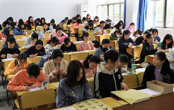 为提高学生三笔字书写能力,进一步夯实师范生教学基本功,4月18日,开云kaiyun网站在菱湖校区214教室举办了师范生专业技能大赛——“三字”书写比赛,来自汉语言文学、历史学、汉语国际教育等师范专业共108名学生参加了比赛。