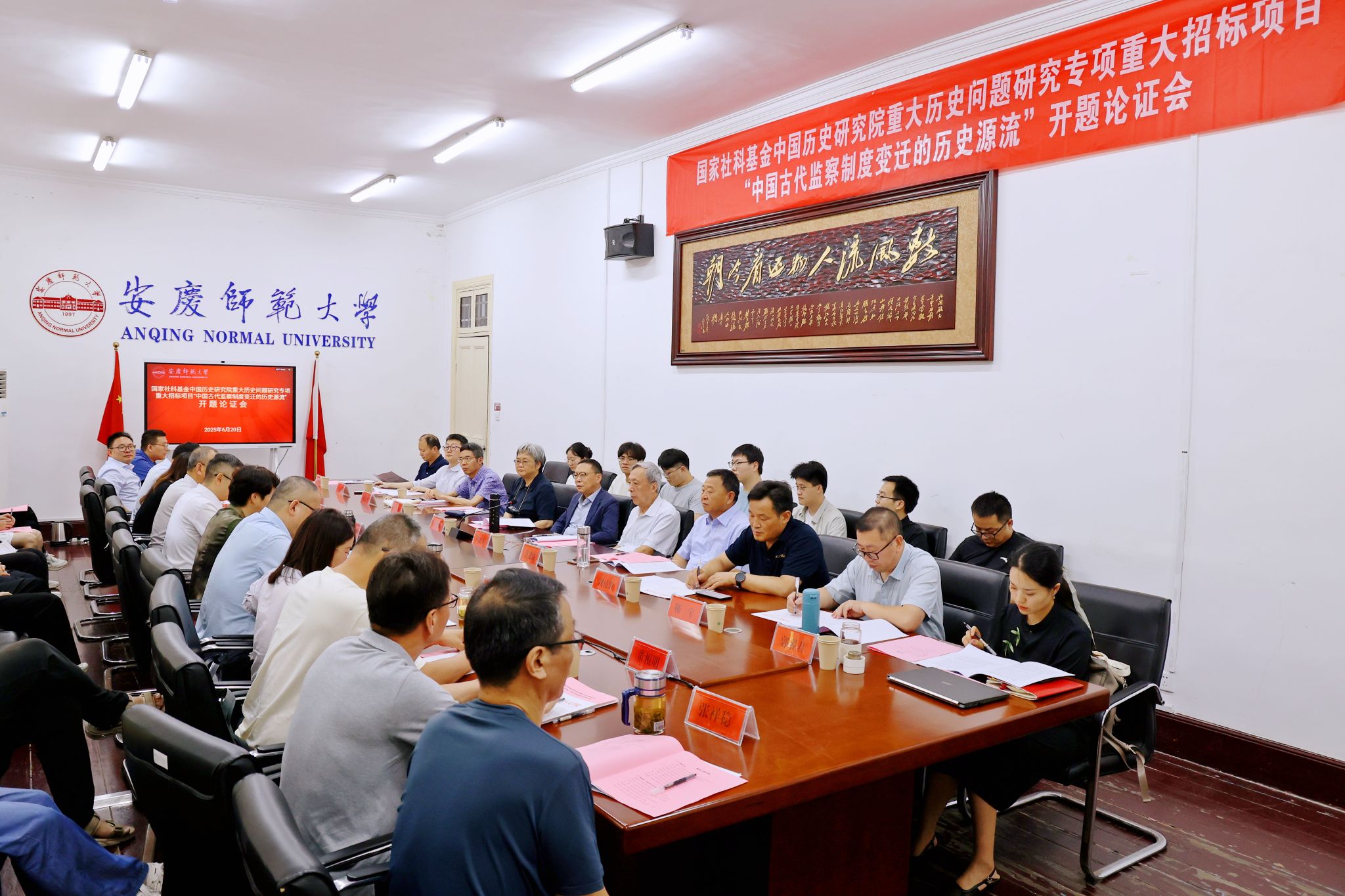 6月20日,开云获批的国家社科基金中国历史研究院重大历史问题研究专项2024年度重大招标项目“中国古代监察制度变迁的历史源流”开题论证会顺利举行。来自中国社会科学院、中国人民大学、郑州大学、南京审计大学、曲阜师范大学等高校的专家学者参加论证会,校长彭凤莲出席论证会并代表学校致辞。会议由校党委常委、副校长徐晓宁主持。