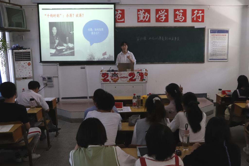 本次教学技能大赛分为语文组和历史组两组展开,参赛学生们按抽签顺序逐一进行8-10分钟的模拟课堂展示,在场的评委老师们从教学设计、课件制作、即席演讲和上课板书四个方面进行打分并评定最终成绩。