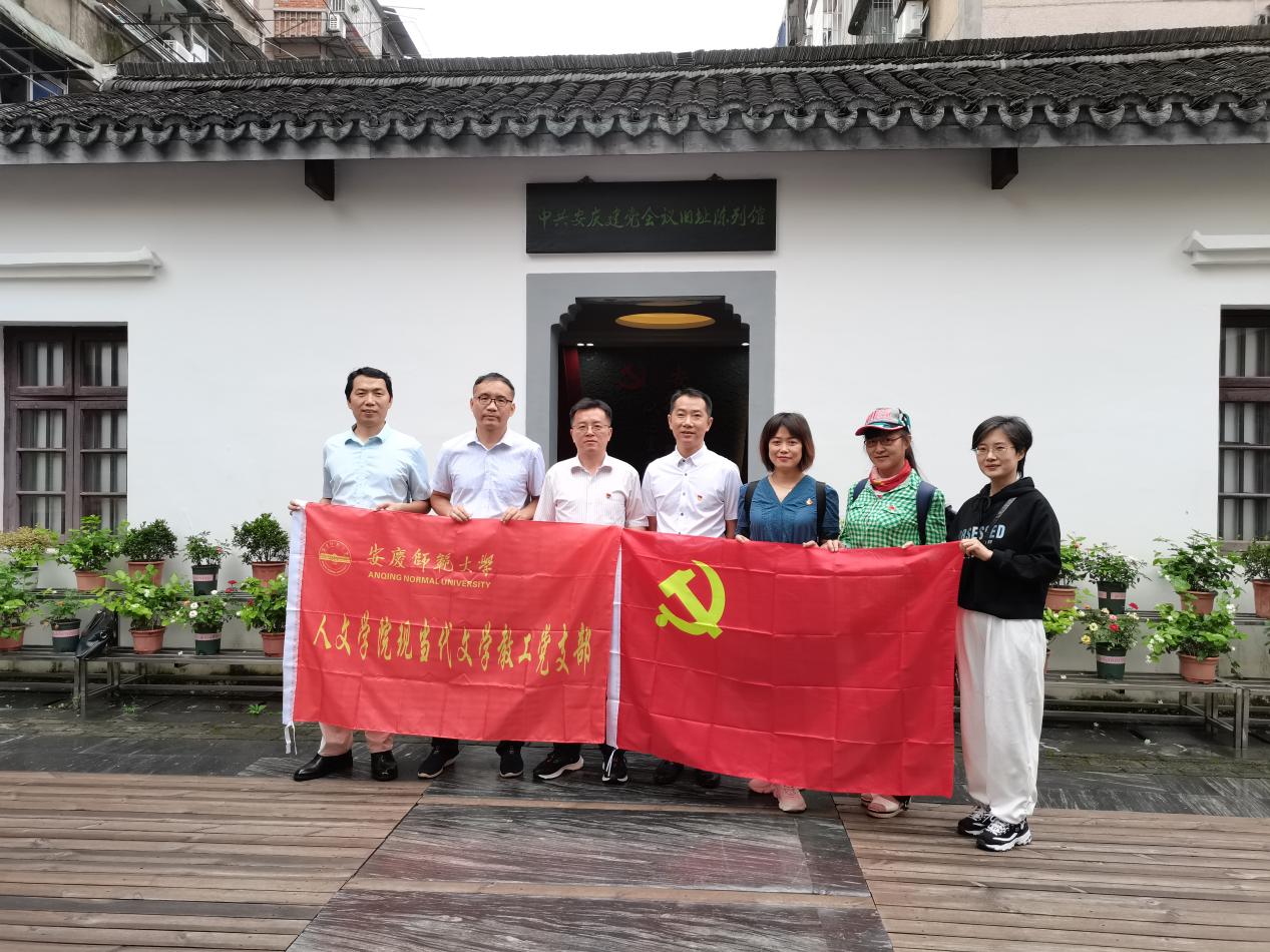为迎接中国共产党成立100周年,进一步推动党史学习教育走深走实走心,6月20日上午,安庆师大开云kaiyun网站中国现当代文学教工党支部、文艺学教工党支部和中国古代文学教工党支部全体党员,在党委书记张红飞的带领下,赴中共安庆建党会议旧址开展红色现场党课学习活动,重温了百年前红色革命在安徽的兴起和发展的历史。