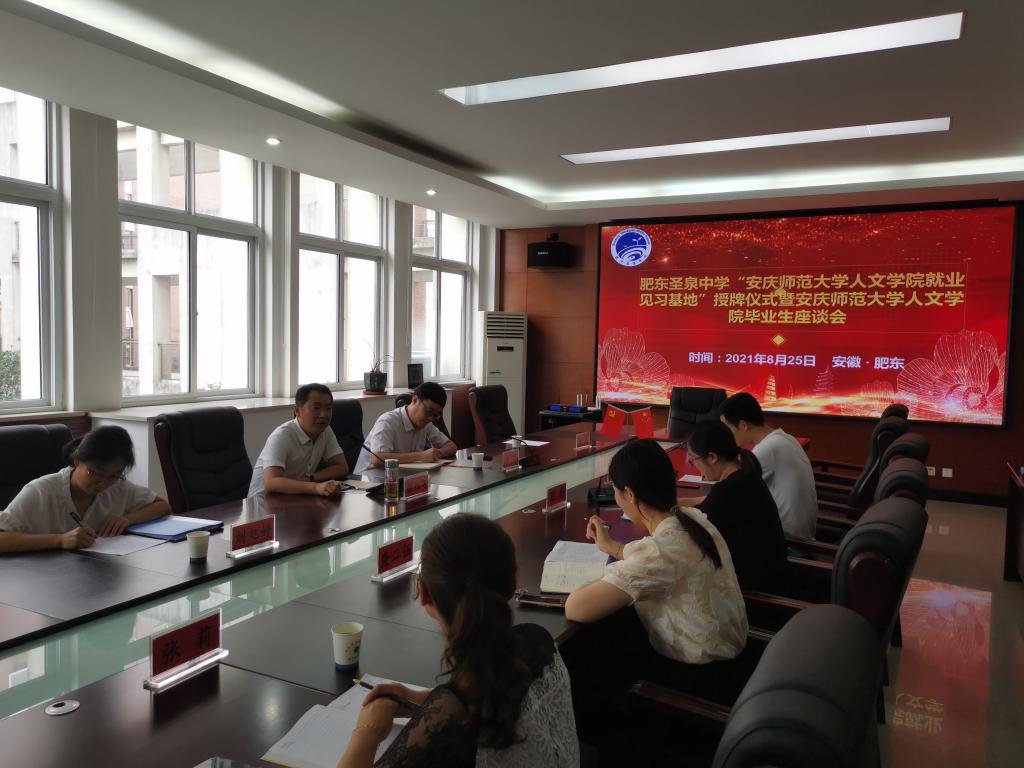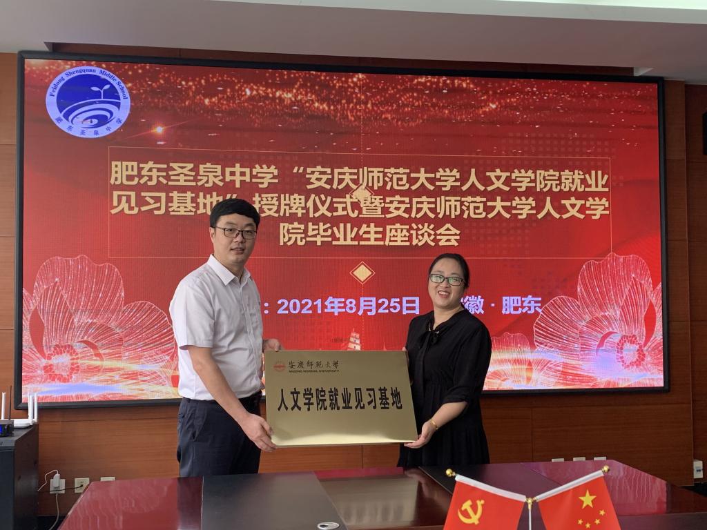 党委副书记王波代表学院为肥东圣泉中学授予“开云kaiyun网站就业见习基地”牌匾。与会人员就人才培养质量、就业见习基地建设等方面展开了深入交流。